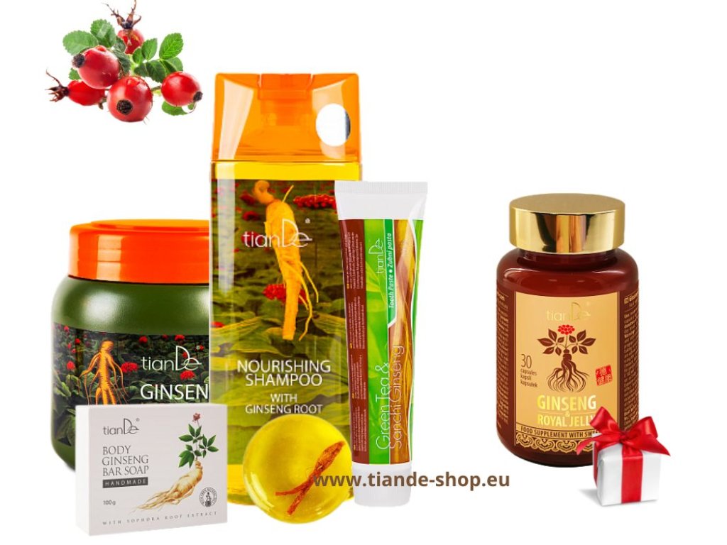 ✨ Sada přináší komplexní péči s ženšenem – od vlasů přes pleť až po celkové posílení organismu.