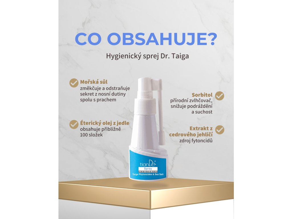 Hygienický sprej Fytoncidy tajgy a mořská sůl z řady Dr. Taiga je inspirován čistou a panenskou přírodou Altaje. Poskytuje šetrnou, ale účinnou hygienickou péči o nosní dutinu a pomáhá udržovat přirozenou rovnováhu nosní sliznice. Přináší pocit svěžesti, lehkosti dýchání a komfortu při každodenním používání.
